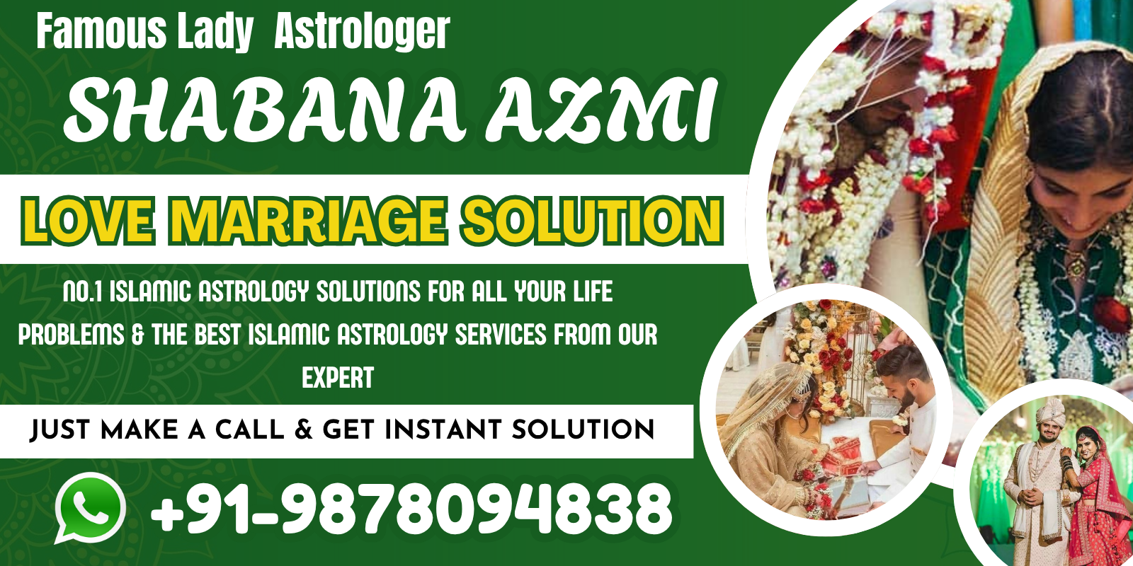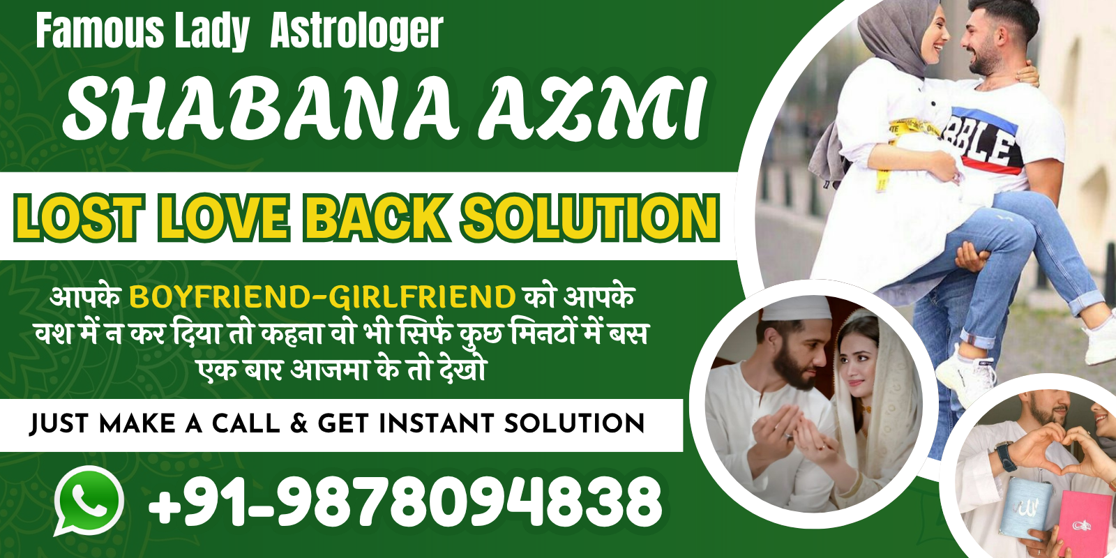A highly respected astrologer and expert in Love Marriage Specialist, Famous Lady Astrologer Shabana Azmi is well-known throughout the world. Numerous honours and medals have been bestowed upon him for his extensive expertise in Islamic astrology and his positive contributions. He has numerous happy customers who value his outstanding services, spread throughout India, Canada, Australia, New Zealand, the UK, and the USA. Among the noteworthy aspects of his services are their great efficacy, affordable prices, and assurance of safety from adverse effects.