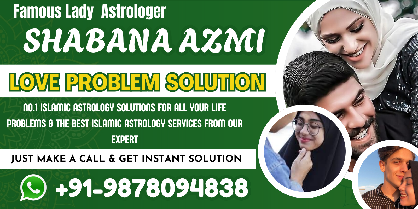 Famous female Astrologer Shabana Azmi is famous for solving any type of problem by pure astrology in Muslim astrology. She can give you all types of advice regarding your problem. If you are facing any problem, like dua for love, wazifa for family problems, marriage solution, then she has advice to overcome your problems.